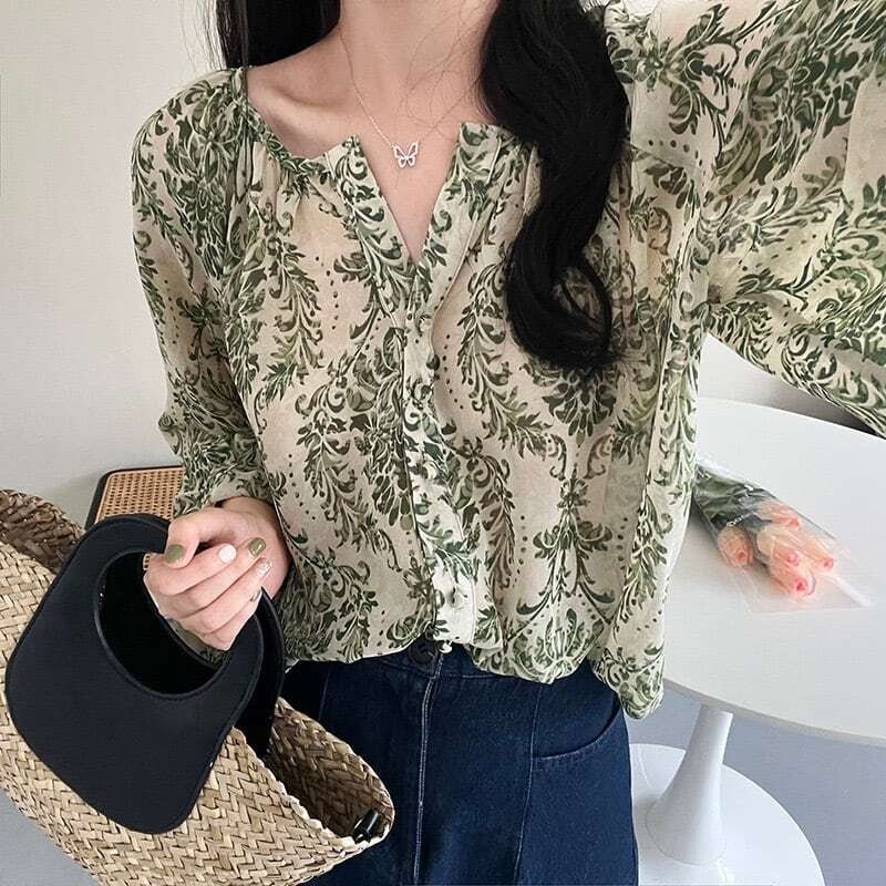 ▶︎落ち着いたグリーンのオーナメント柄が大人っぽい。