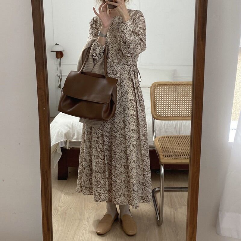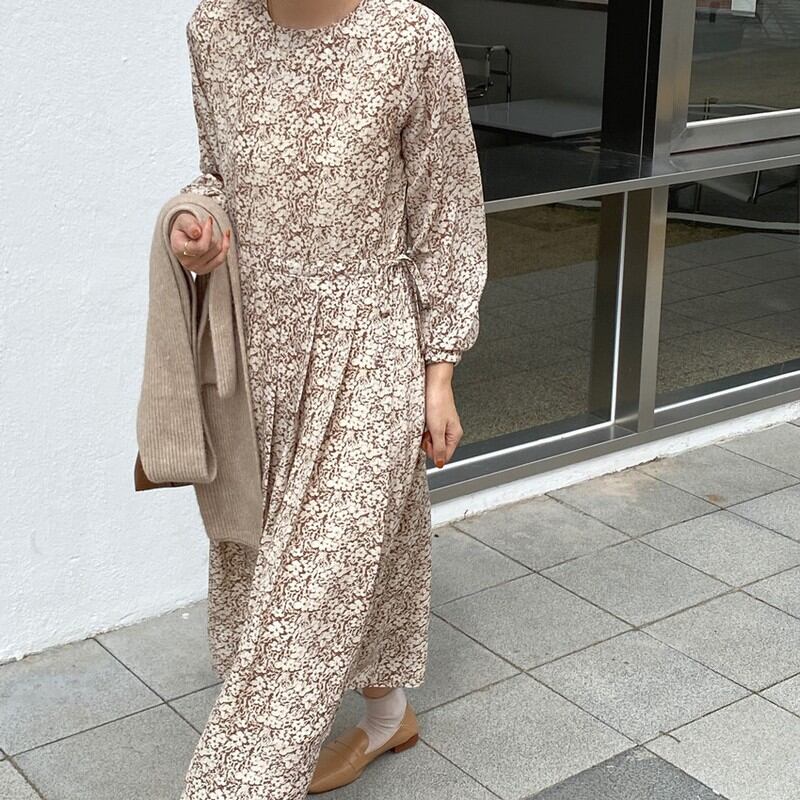 ▶︎細かいフラワーモチーフで大人っぽい印象に仕上がるワンピース。