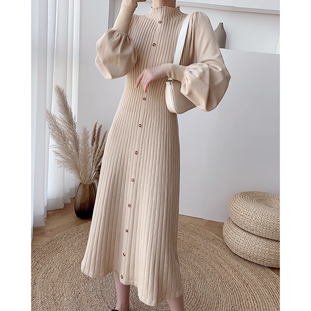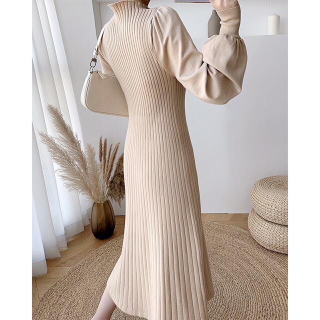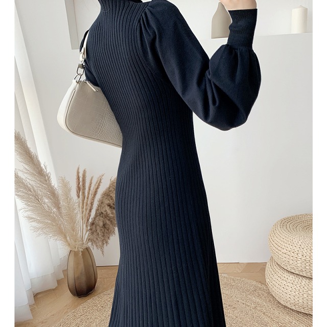 lantern sleeve rib knit dress 10453