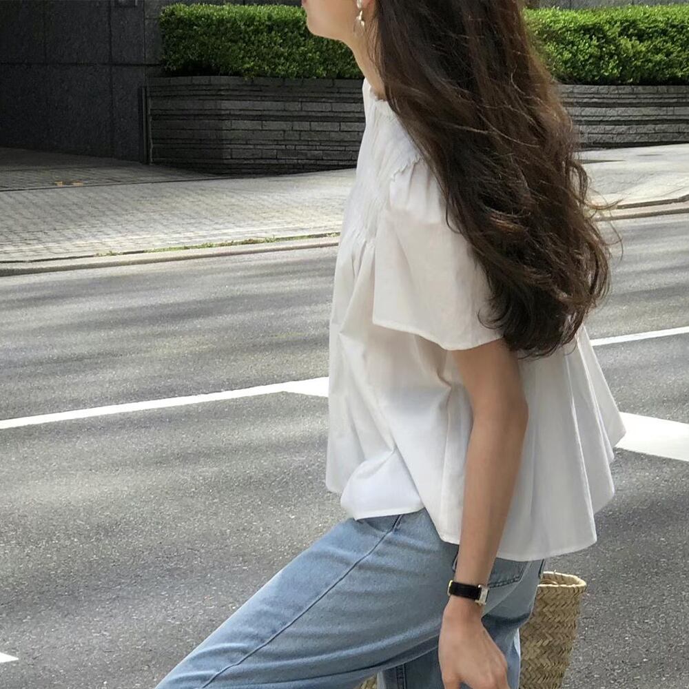 ▶︎ギャザープリーツがポイントの軽やかなブラウス。