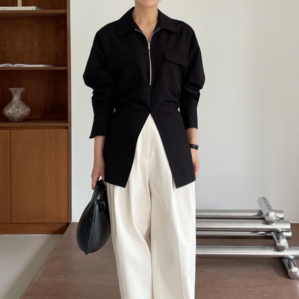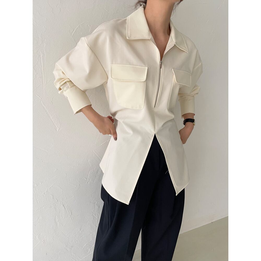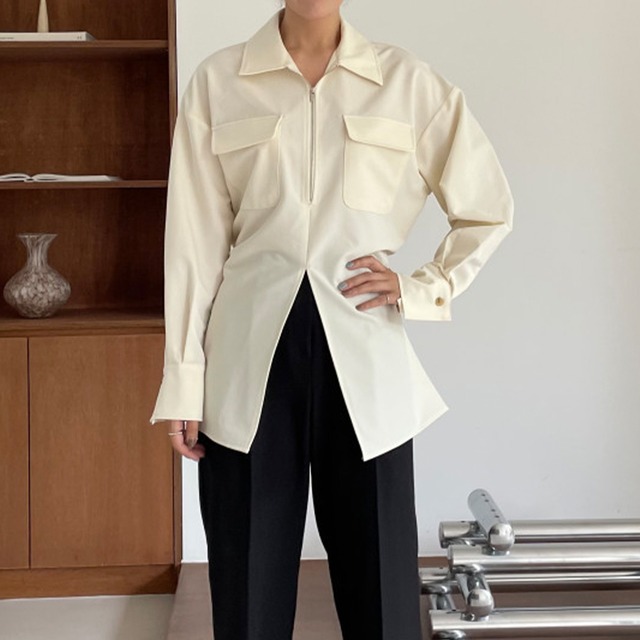 half zip slit shirt 10603