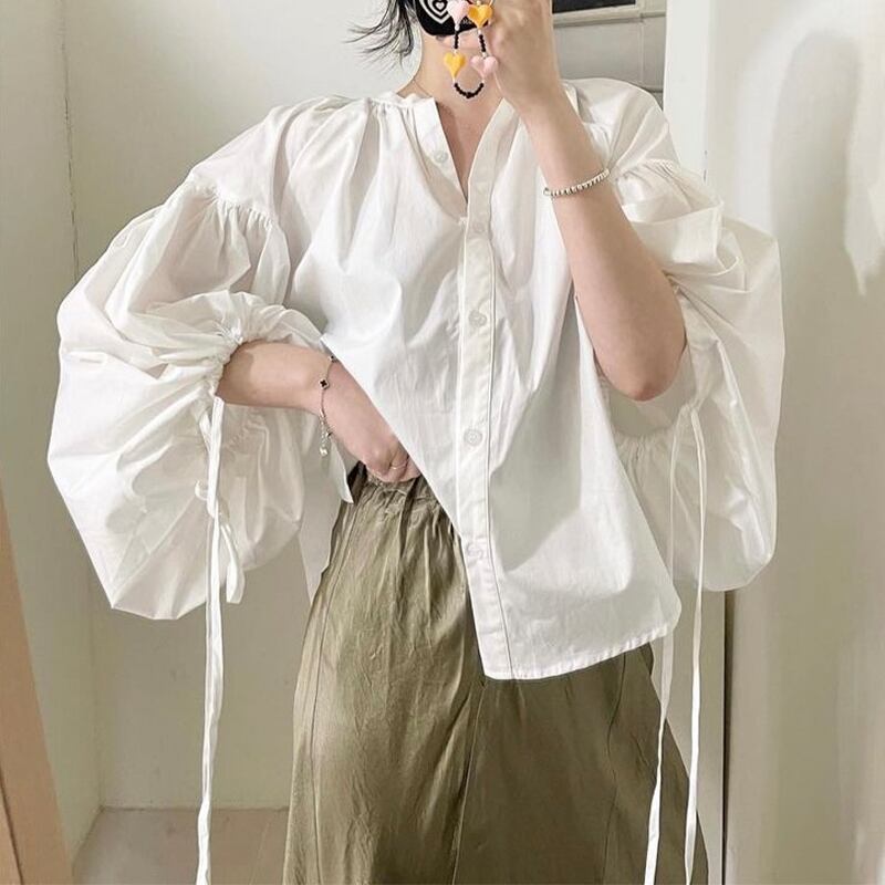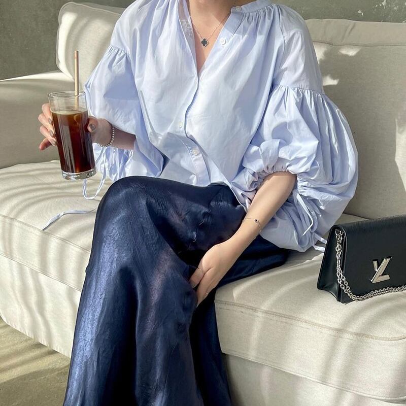 ▶︎ボリュームたっぷりのスリーブが抜け感を演出してくれるブラウス。