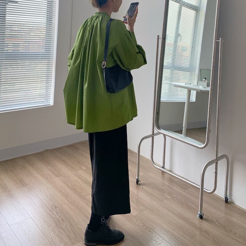 ▶︎トレンド感あるビビットなカラーでコーディネートを華やかに彩るギャザーブラウス。