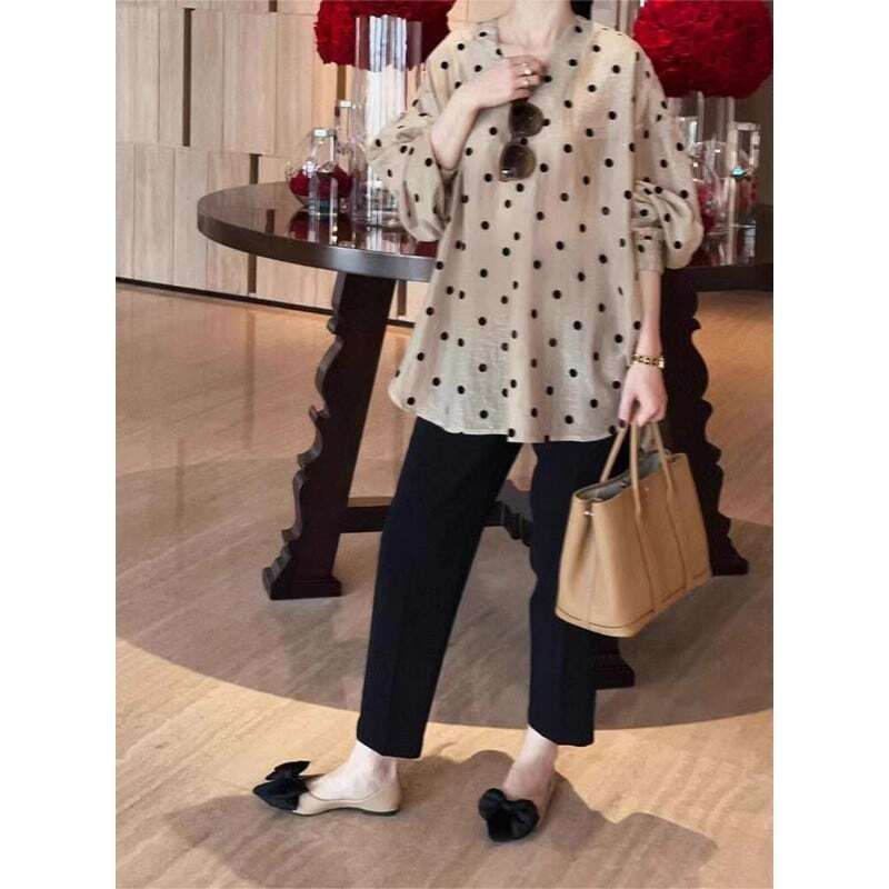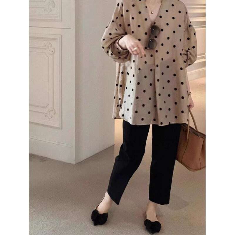 ▶︎シンプルなボトムスに合わせるだけで1枚で主役になれるVネックのドットブラウス。 袖口にはゴムが入っているのでたくし上げることでふんわりしたお袖のシルエットに。 お出かけに着たい1枚です。 ▶︎color ベージュ ブラック ▶︎size(cm) S 着丈72.5/バスト122/肩幅62/袖丈52/袖口19/裾口158 M 着丈73.5/バスト126/肩幅63/袖丈53/袖口20/裾口162 L 着丈74.5/バスト130/肩幅64/袖丈54/袖口21/裾口166 ※採寸には1〜4cmほどの誤差がある場合がございます。 ▶︎material テンセル ナイロン ポリウレタン ーーーーーーーーーーーーーーーーーーーー ▶︎インスタで他のアイテムもチェック! https://www.instagram.com/_sophiie_lookgoodon/ ーーーーーーーーーーーーーーーーーーーー 【お届けについて】 こちらの商品は海外より取り寄せ、検品後に発送いたします。 ご注文(ご入金)から通常<1週間〜3週間>程度で発送いたします。ご了承の上ご購入ください。 【お支払い方法について】 ・クレジットカード決済(手数料がかからずオススメです。) ・キャリア決済(docomo/au/Softbank/Y!mobile 手数料300円) ・あと払い決済(手数料350円) ※お支払い方法の種類が変更になる可能性がございます。 【注意事項】 ・タイミングによっては 商品在庫切れにより注文キャンセルとさせていただくこともございますので、予めご了承くださいませ。 ・こちらは輸入品となります。日本製とは検品基準が異なる為、 新品未使用品でもごくわずかな汚れや傷がある場合もございます。 ・商品の色味は、お手持ちのスマートフォンの画面によって実物と若干異なる場合がございます。 ・イメージ違いやサイズ交換等、お客さまご都合による交換、返品は対応出来かねます。ご了承ください。 ※こちらに重要事項を詳しく記載しております。ご購入前にこちらをお読みください。 ▶︎https://www.sophiie-lgo.com/about