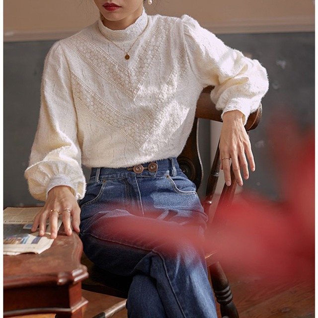 ▶︎レース調の生地がクラシカルな雰囲気を作ってくれる一枚。
